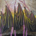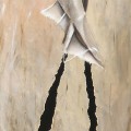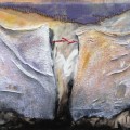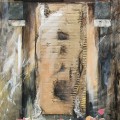In mijn tweedimensionale werk is vooral versleten textiel favoriet, maar ook gescheurd papier, verkreukeld karton, of gebruikt schuurpapier. Kortom materialen die een zichtbare geschiedenis met zich meedragen.
