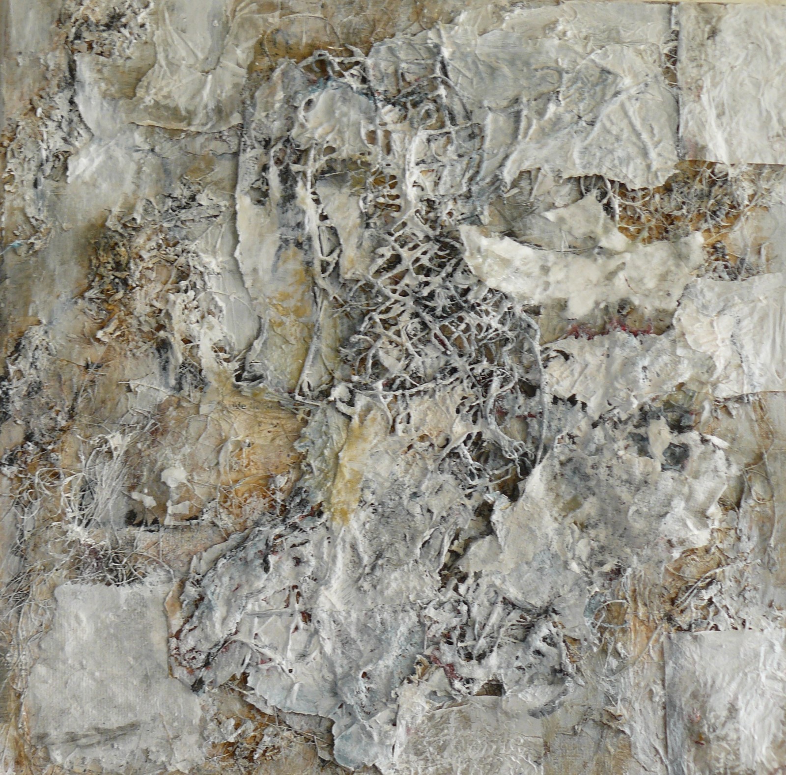 In mijn werk creëer ik, met materialen en verschillende soorten papier, vaak handgeschept, gelaagde herinneringen. Elke laag vertelt een verhaal, zoals de aarde een verhaal vertelt, dat gaat over miljoenen jaren waarin sedimenten over elkaar werden gelegd. Het ritme van beweging in het leven naar het ritme van gelaagde materialen.