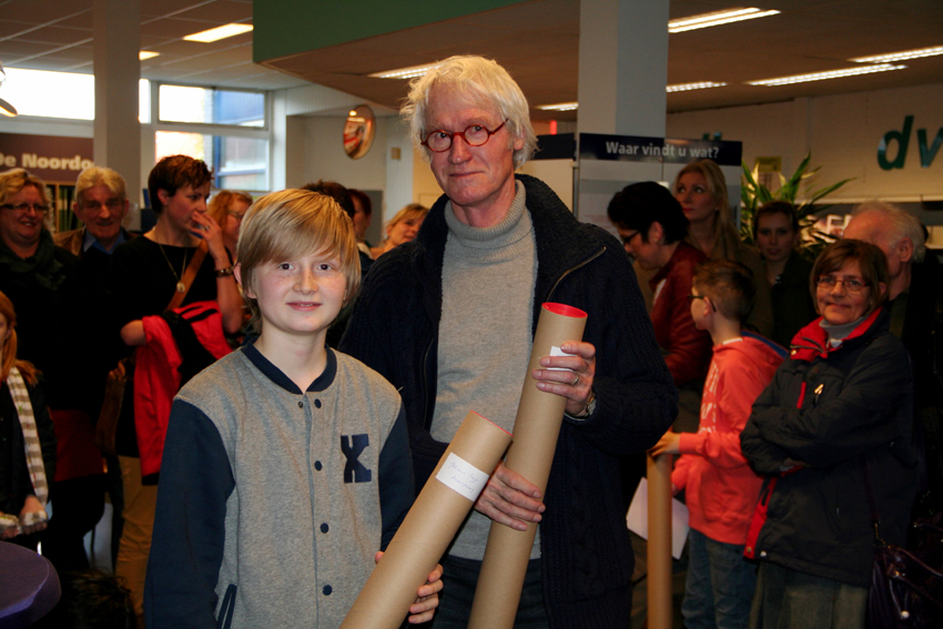 In 2012 vierde de NOP haar 70ste verjaardag, en de Kunstenaars Vereniging Flevoland sloot daarbij aan (met financiële ondersteuning door de gemeente NOP, het Prins Bernhard Cultuurfonds en Netl) met een bijzonder poëzieproject, waarbij de geschiedenis van de polder centraal stond. Als je iets wilt weten over de geschiedenis van de NOP, dan begin je natuurlijk met www.canonnoordoostpolder.nl en dat heeft de KVF ook gedaan. Hein Walter, projectleider van Poëzie in Beeld, heeft poëzieopdrachten geschreven n.a.v. vijftien onderwerpen van de Canon. Vervolgens heeft hij op verschillende basisscholen gastlessen gegeven. In totaal zijn er 215 gedichten geschreven, die allemaal gaan over een bepaalde periode uit de geschiedenis van de NOP: vanaf de ijstijd via de kastelentijd en de drooglegging naar het nu. De kinderen konden zich bij het schrijven van de gedichten vereenzelvigen met een personage. Het ene kind koos daarbij voor een onderduiker, het andere voor een archeoloog die een Middeleeuwse pot vindt en een derde koos ervoor om als een adelaar boven de tijd te zweven en de hele geschiedenis in kaart te brengen.